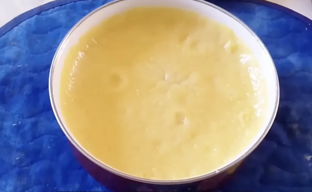 Приблизно через 7–10 хвилин маса стане однорідною, тягучою і гладкою — крупинки творогу майже зникнуть.