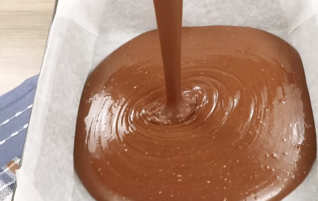 Виливаю тісто у форму (я застеляю пергаментом або злегка змащую олією) і відправляю у розігріту духовку.